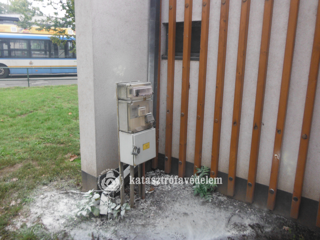 On Sunday afternoon, next to a buffet at Segner Square in Debrecen, the lid of an electrical junction box caught fire. Firefighters from Debrecen extinguished the flames with a powder extinguisher.