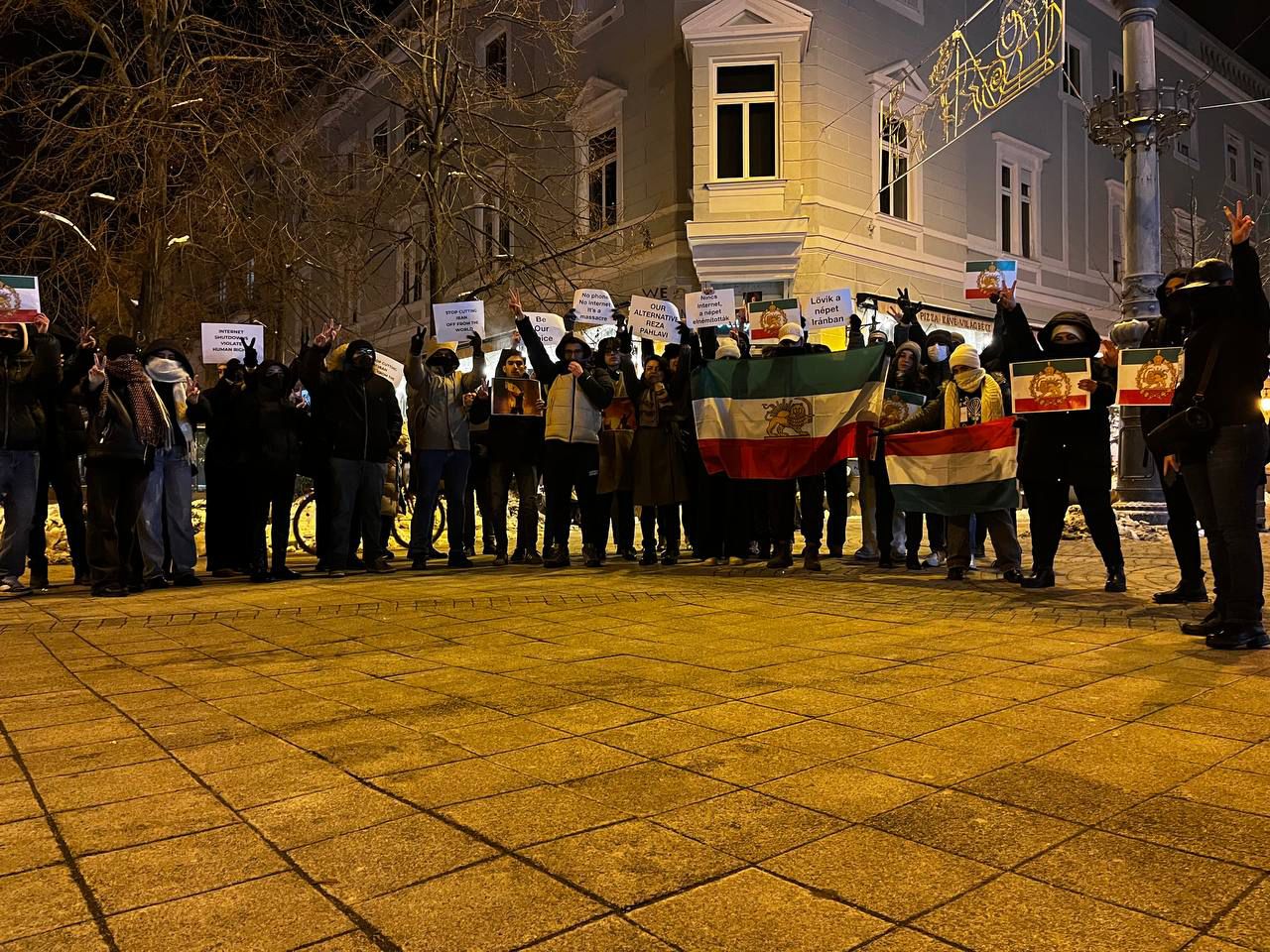 For safety reasons, many protesters at the Debrecen demonstration covered their faces to remain anonymous. This precaution was taken to prevent the Iranian authorities from identifying them and targeting their families back in Iran.