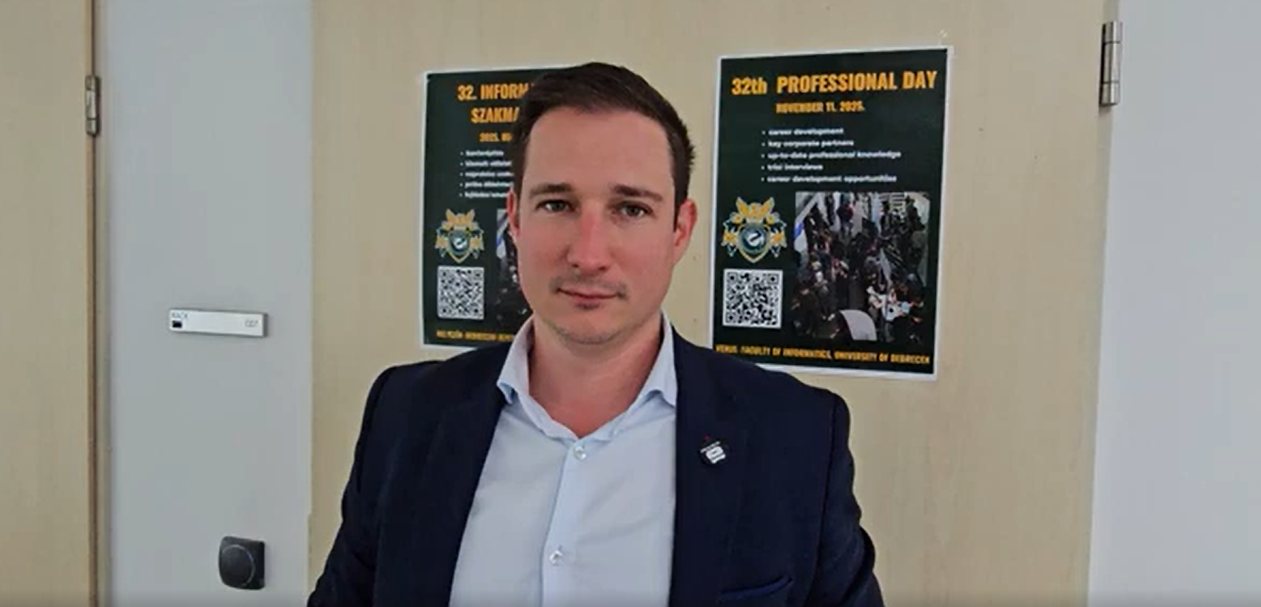 Zsolt Pankotai, a graduate of the University of Debrecen’s Faculty of Informatics and representative of VR Solution Hungary, introduced the company’s latest innovation during the IT Professional Days held at the Kassai Road campus. VR Solution Hungary is a software development company specializing in virtual and augmented reality technologies.