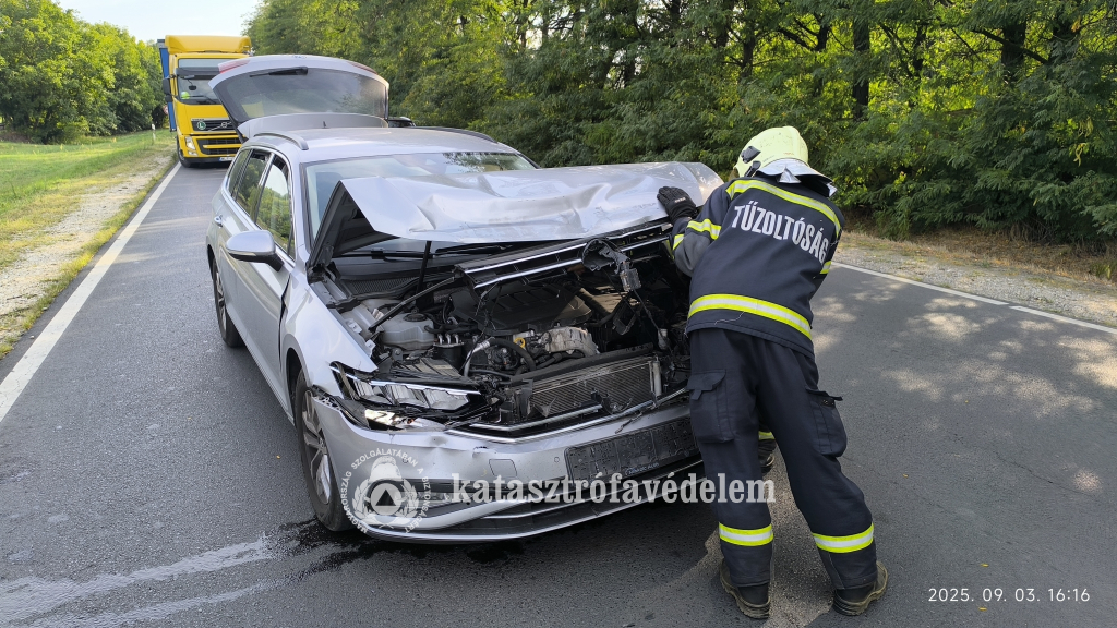 Two passenger cars collided on Wednesday on main road no. 4, near Debrecen, and firefighters were called to the scene.