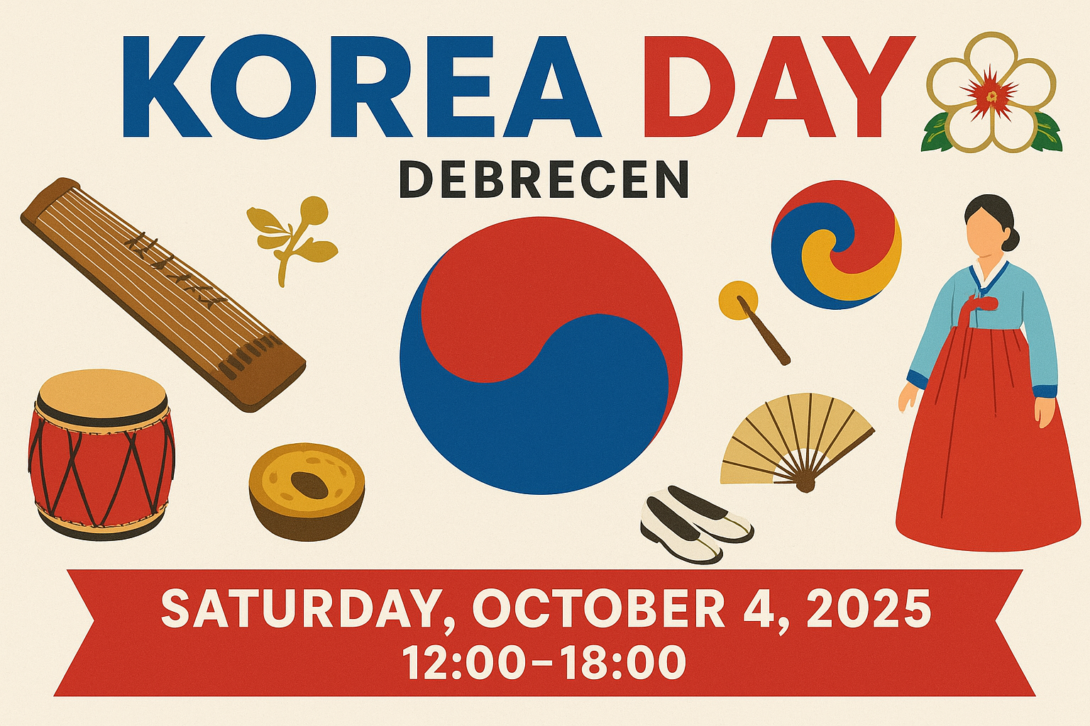 Debrecen will get a taste of Korea this weekend as the Kölcsey Centre hosts Korea Day on Saturday, October 4, 2025, from 12:00 to 18:00. The event invites visitors to experience the rich cultural heritage and dynamic modern face of Korea, from traditional music and martial arts to K-pop performances, food, and workshops.