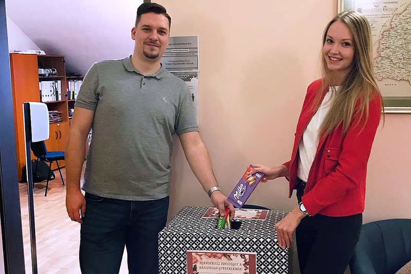 The launch of the charity campaign was initiated by the staff of the Faculty of Pharmacy. The donation, amounting to almost HUF 100,000, has been accumulating in a large chocolate collection box located in the building of the Clinical Pharmacy since the beginning of December.
