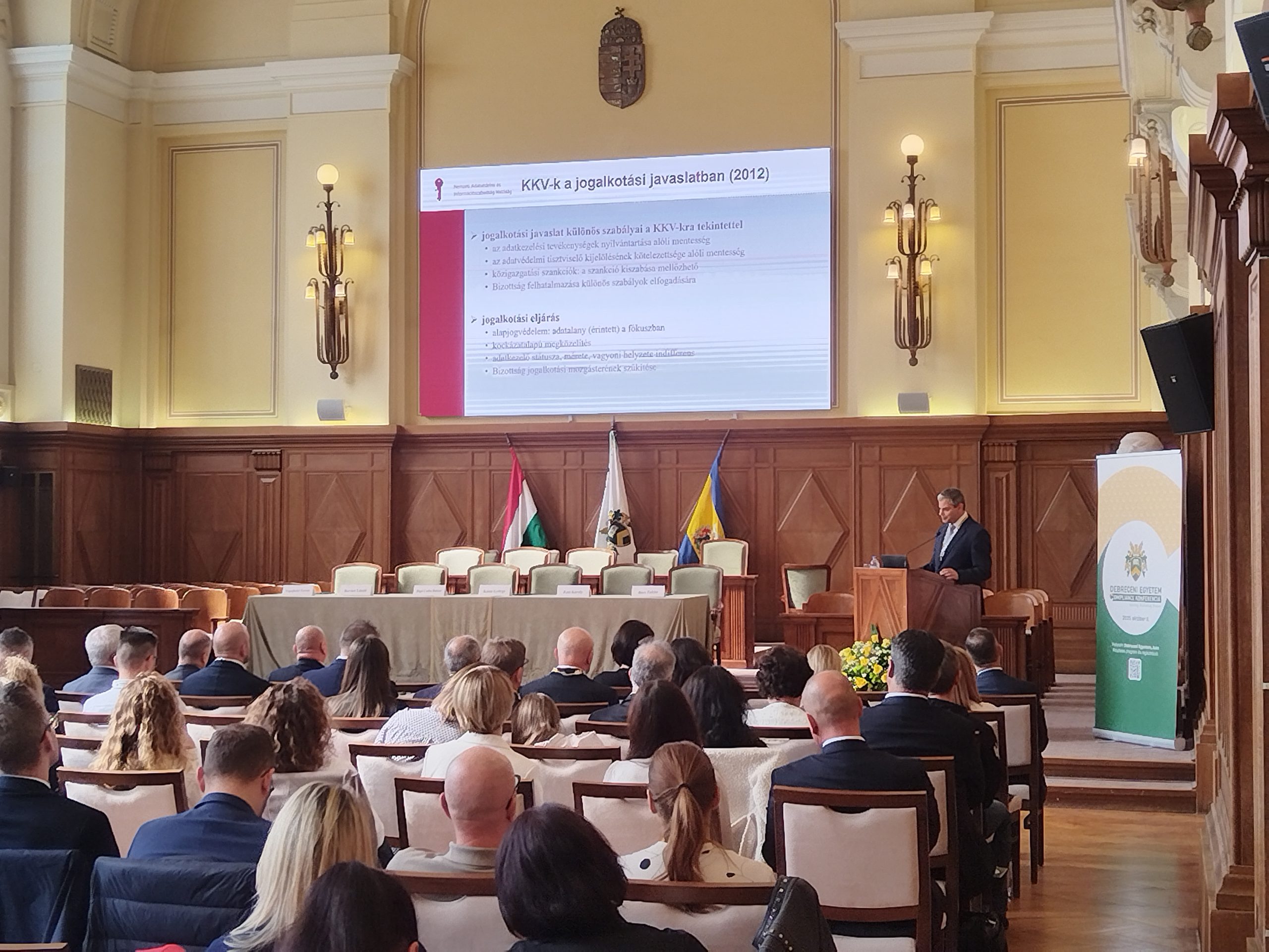 In the Aula of the Main Building of the University of Debrecen, before an audience of 250 professionals and interested parties, György Kossa, chairman of the board of the Count István Tisza Foundation for the University of Debrecen, said that compliance — meaning law‑abiding behaviour, transparency and an ethical operating culture — is no longer simply the task of a corporate department; the concept goes beyond administration and regulations.